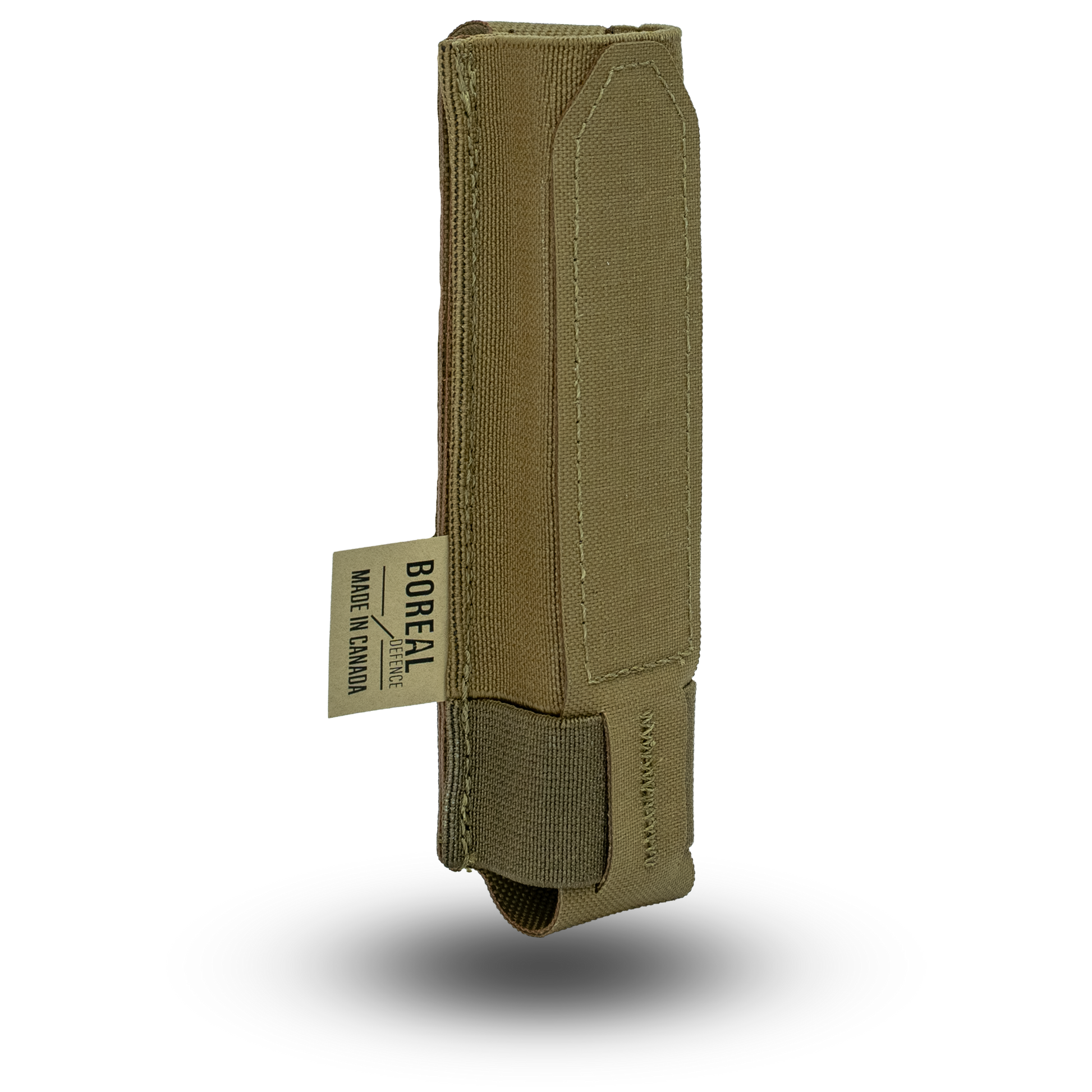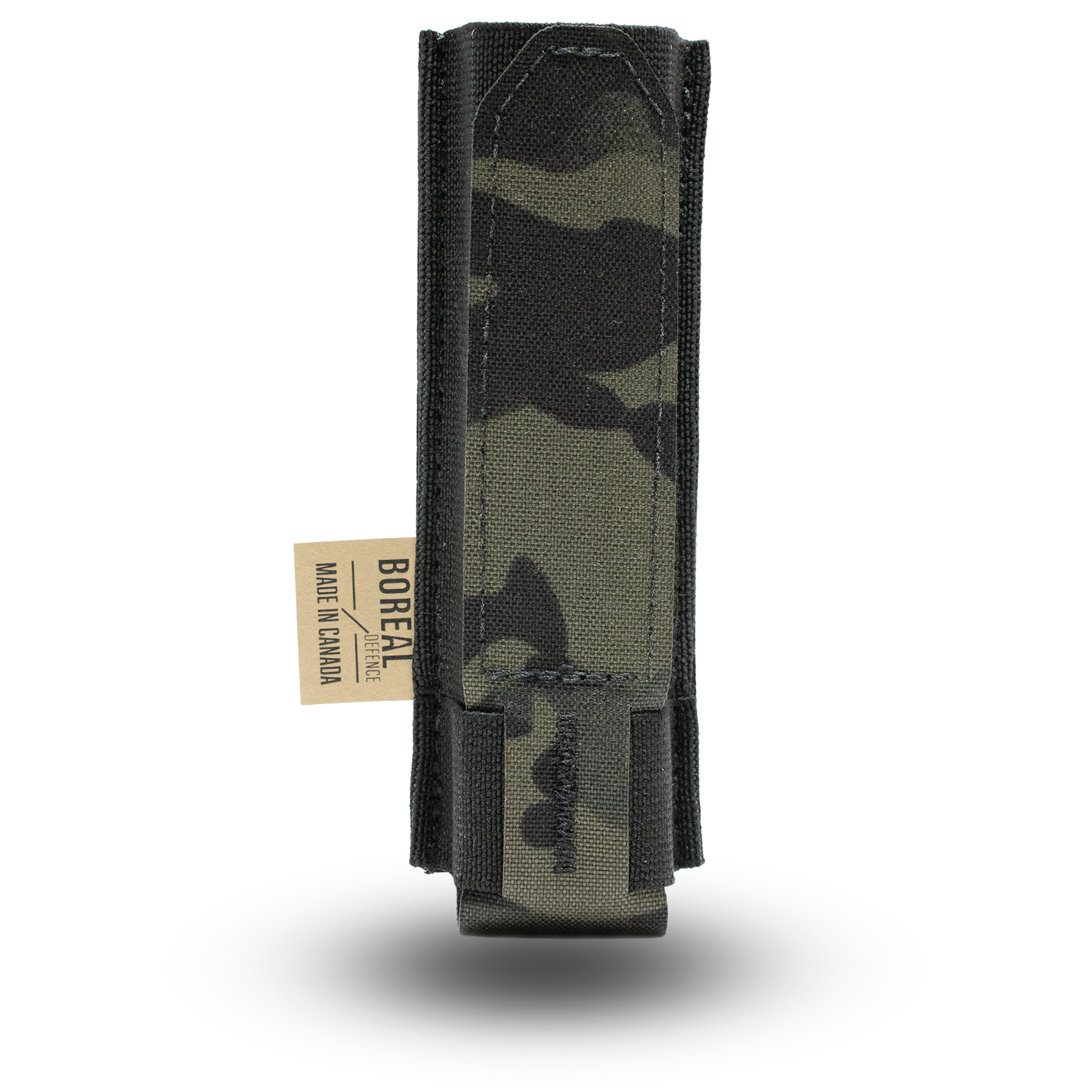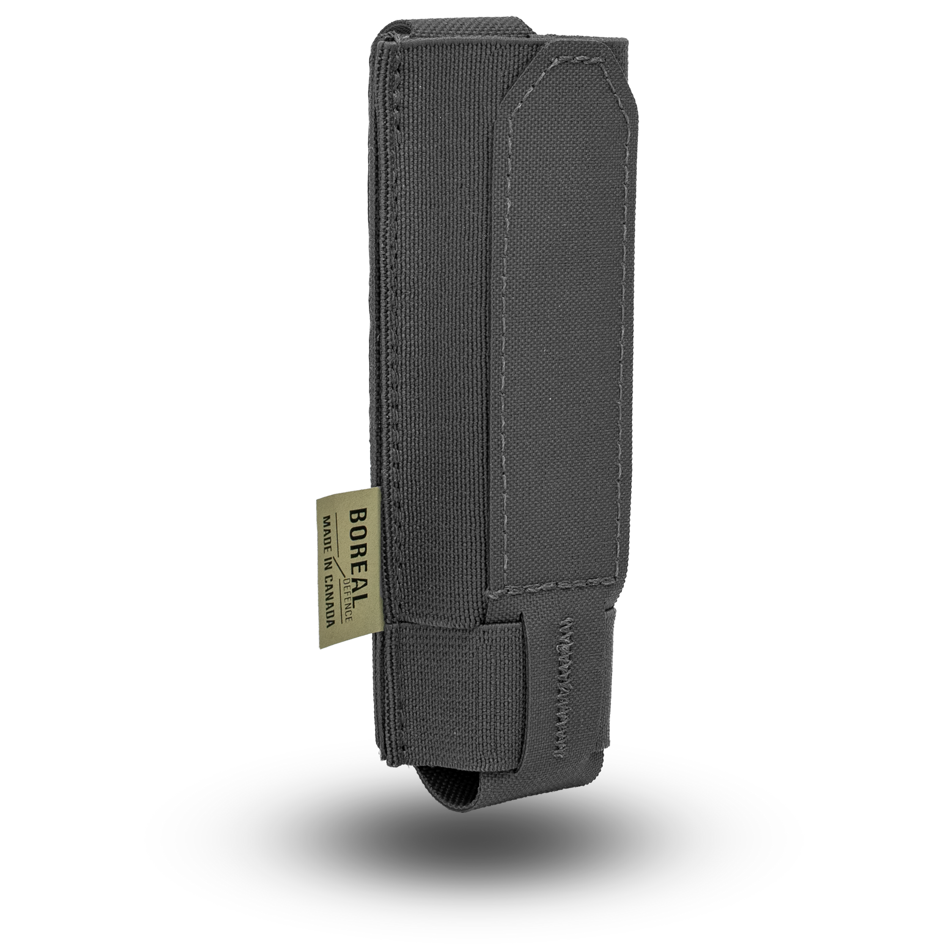 The Boreal Defence Baton pouch is designed to allow for swift access of a baton without compromising on retention. Made from an elastic base, this open-top pouch provides ample real estate to quickly grab and deploy the baton when required. Sized specifically to ASP baton, the pouch can be used with similar style and size batons. The inherent rigidity of the pouch allows for users to close their baton using the bottom portion of the pouch if needed.Â