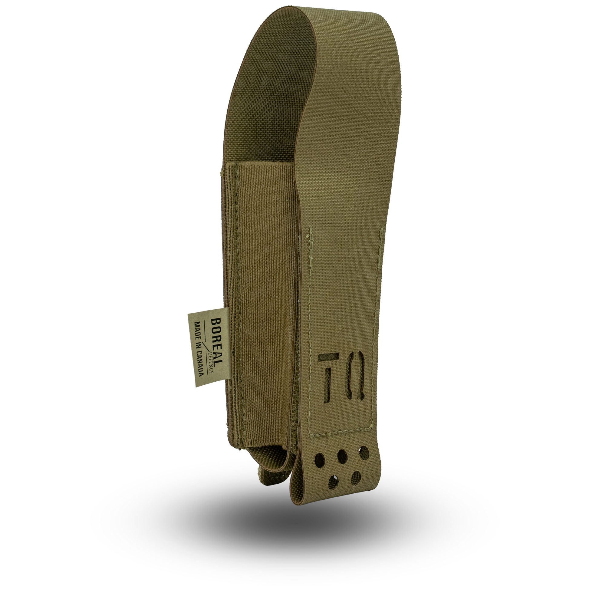 The Boreal Defence TQ pouch is an elastic based pouch which is sized to carry NAR CAT Gen 7 or similarly sized tourniquets. The flap of our pouch firmly holds your tourniquet, protecting the Velcro from abrasion and wear from every day carry. The textured flap allows easy access to the pouch.