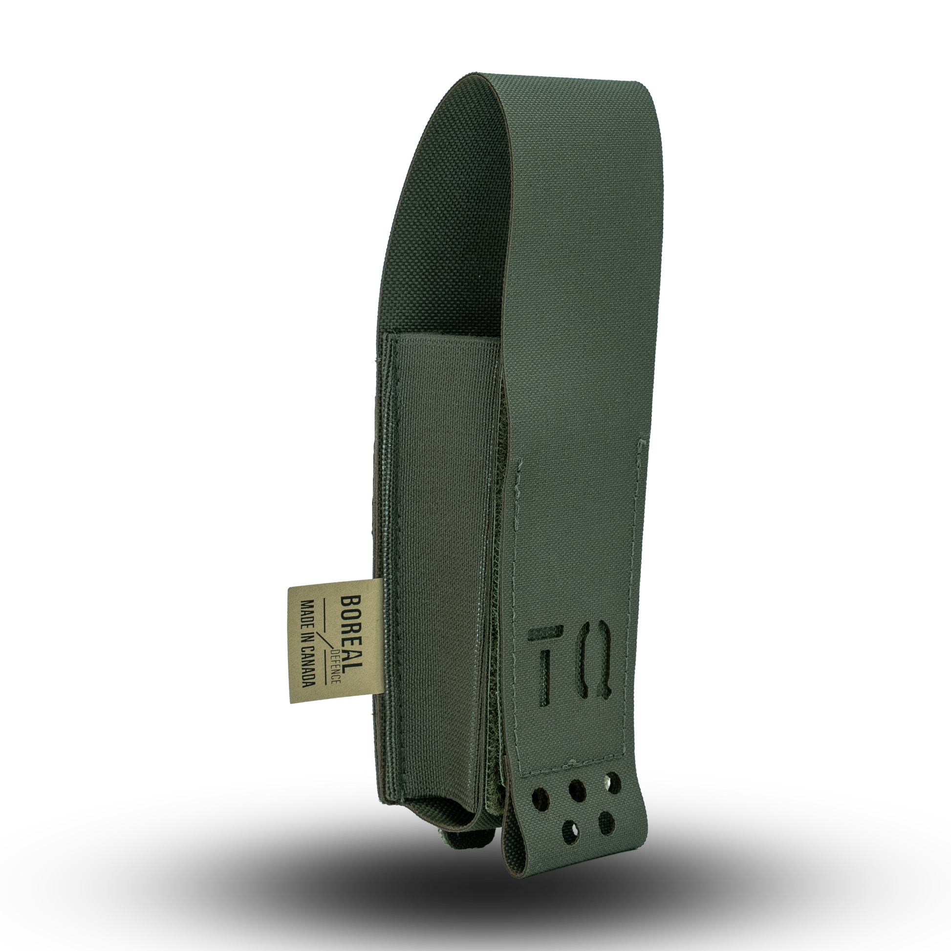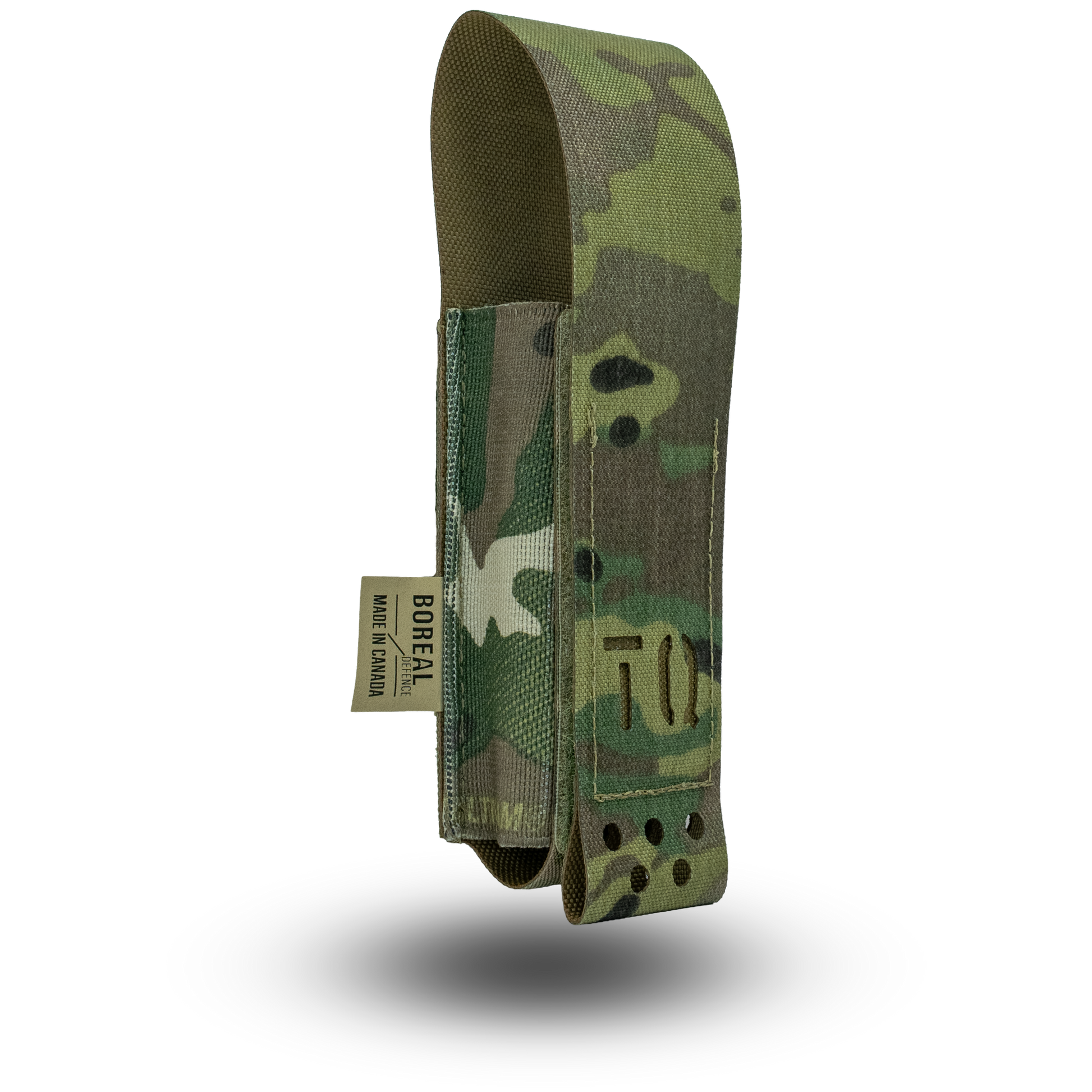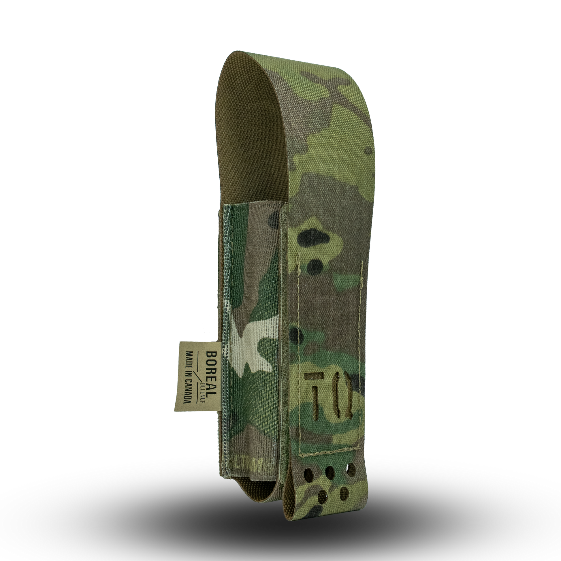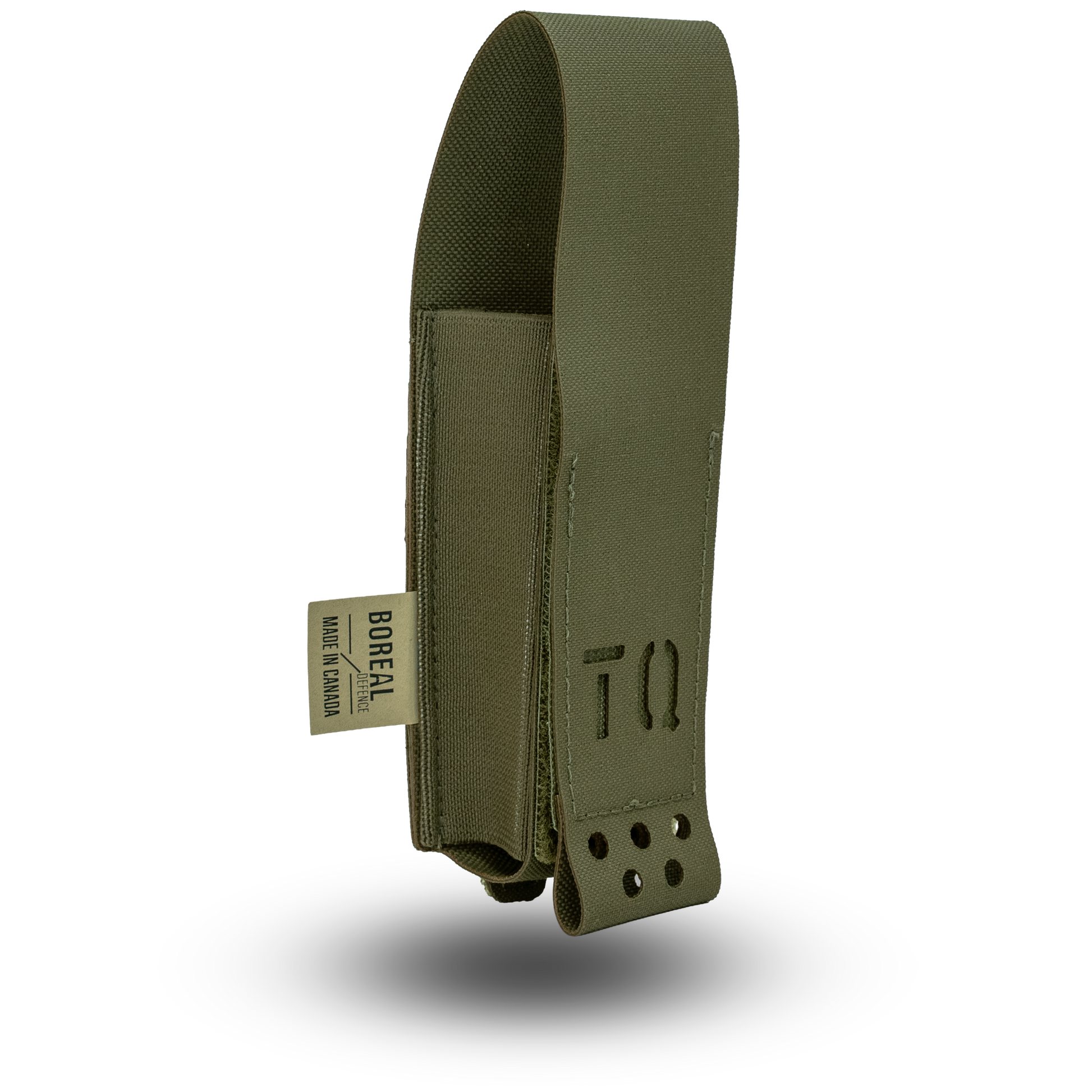 The Boreal Defence TQ pouch has elastic retention, which is sized for North American Rescue Combat Application Tourniquet (CAT) Gen 7s.